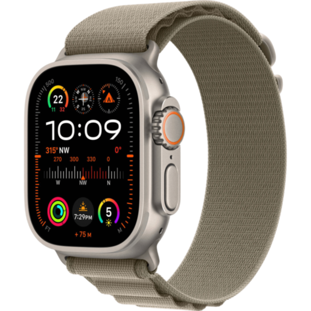 Apple Watch Ultra 2 49 mm Titanium W/Olive Alpine Band Loop L / MRF03GK/A