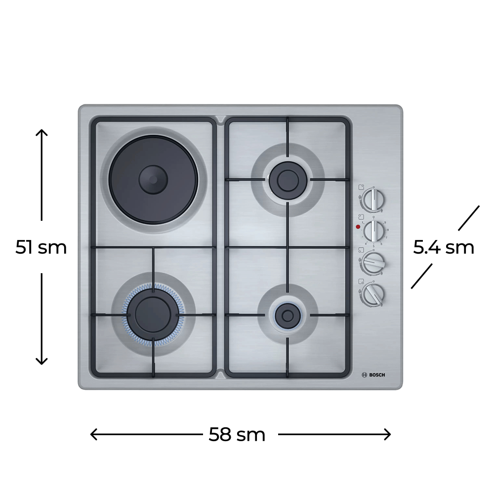Bosch PBY6C5B62O qaz bişirmə səthi keyfiyyətə və etibarlılığa dəyər verənlər üçün doğru seçimdir. Bu model yeməklərinizi rahat və zövqlə hazırlamağa imkan yaradır.