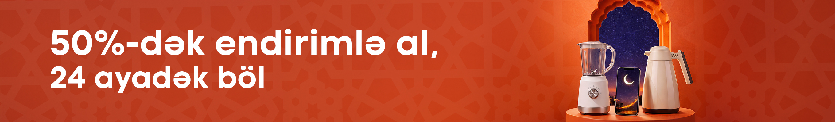10-19 mart tarixlərində istədiyin məhsulu 50%-dək ENDİRİMLƏ buradan al. Endirimli qiyməti isə 24 AYADƏK bölüb rahat-rahat ödə.