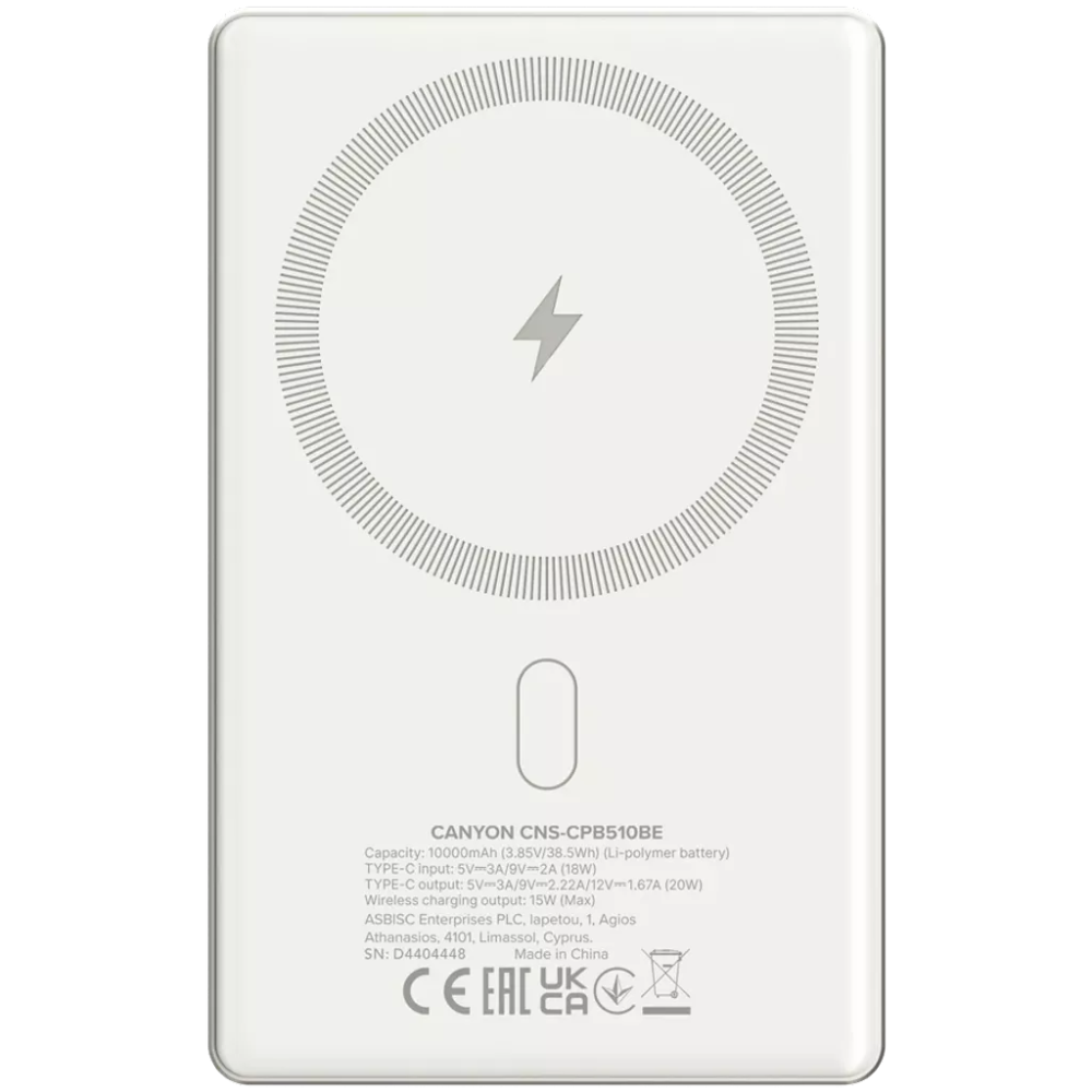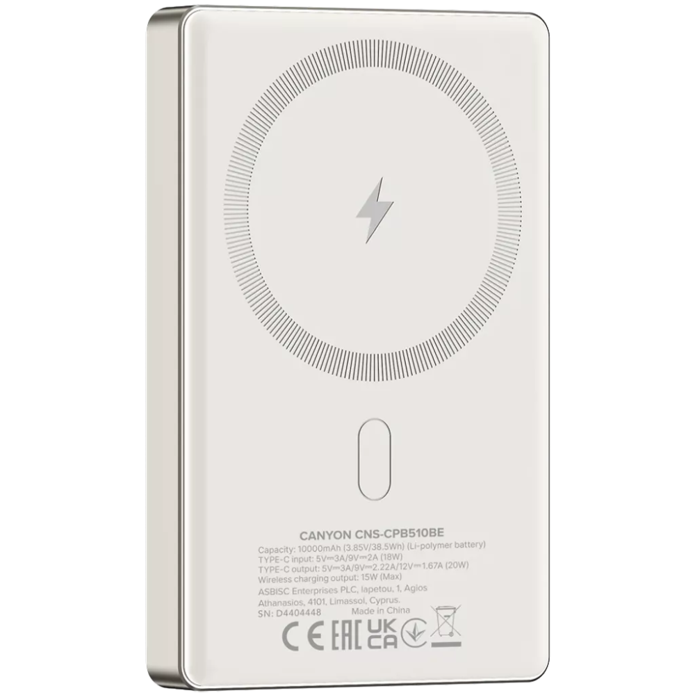 Power Bank Canyon OnPower 510 Slim Magsafe 10000 мАч Beige PD20W
