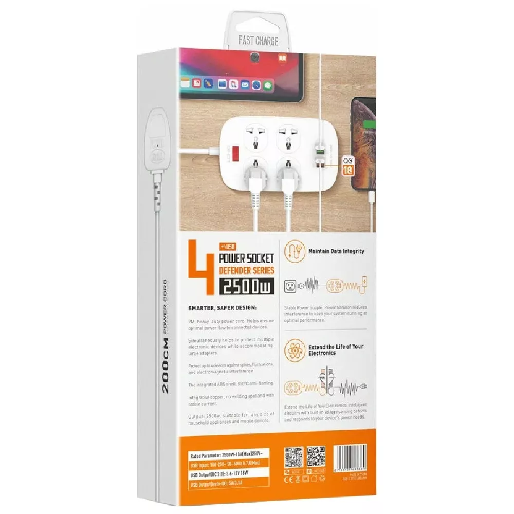 Удлинитель Voltam 3 m VP-32 4 Way Universal Type Power Strip