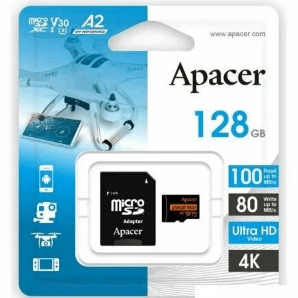 Карта памяти Apacer microSDXC 128 GB UHS-I U3 V30 A2 AP128GMCSX10U8-R