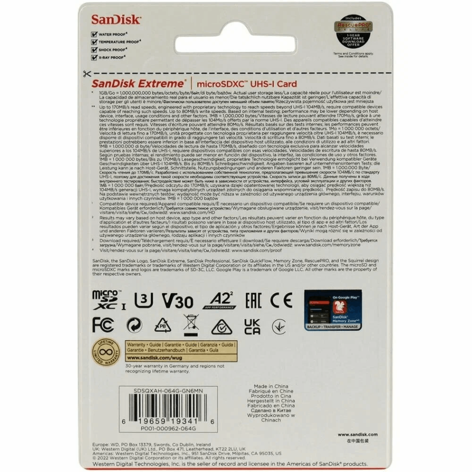 SanDisk Extreme 64 GB Micro SDHX I V30 SDSQXAH-064G-GN6MN